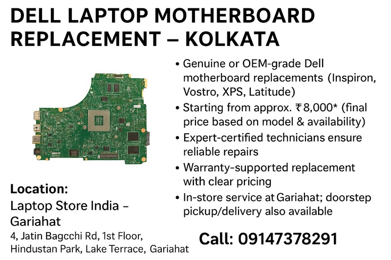 DELL LAPTOP MOTHERBOARD REPLACEMENT – KOLKATA (GARIAHAT) - Computers for sale, Accessories for saleRef. number: 3202500 Updated: 30-08-2025 13:20